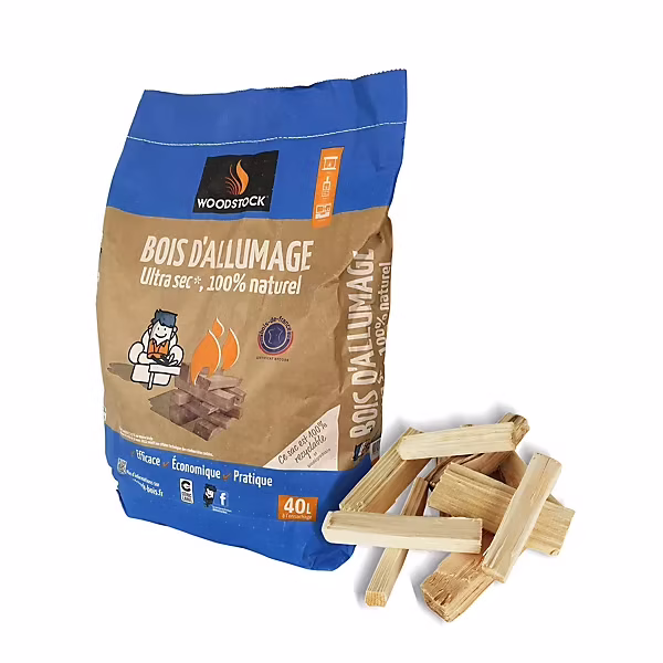 Ce bois d’allumage Woodstock est conditionné en sac de 40 litres et composé de bois dur ultra sec, issu de la valorisation des connexes de scieries françaises. Avec un taux d’humidité inférieur ou égal à 15 %, il garantit un allumage rapide, propre et efficace de tous vos feux de bois. 100 % naturel et sans traitement, il est idéal pour les poêles à bois, inserts et cheminées. Sa qualité est testée et approuvée en laboratoire CERIC, assurant une performance optimale. Facile à stocker grâce à son conditionnement propre et sans poussière. Conforme au décret n°2022-446 et aux recommandations de l’ADEME.